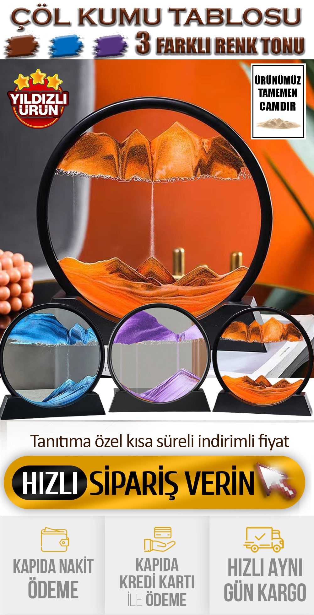 3 Adet KUM SAATİ TABLOSU -